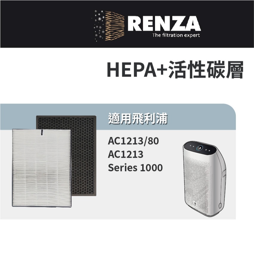 適用PHILIPS飛利浦 AC1213 AC1213/80 舒眠抗敏空氣清淨機 FY1410 HEPA+活性碳濾網 濾芯1片抗敏HEPA濾網|1片蜂巢活性碳濾網Air TreatmentRenza Filtration 濾網專家