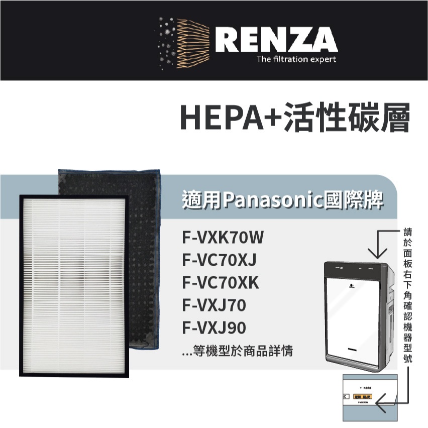 適用Panasonic 國際牌 F-VXK70W F-VC70XK F-VXJ70 空氣清淨機HEPA+活性碳+加濕濾網1片抗敏HEPA+1片脫臭活性碳|1片抗敏HEPA濾網|1片脫臭活性碳濾網|1片加濕濾網Air TreatmentRenza Filtration 濾網專家