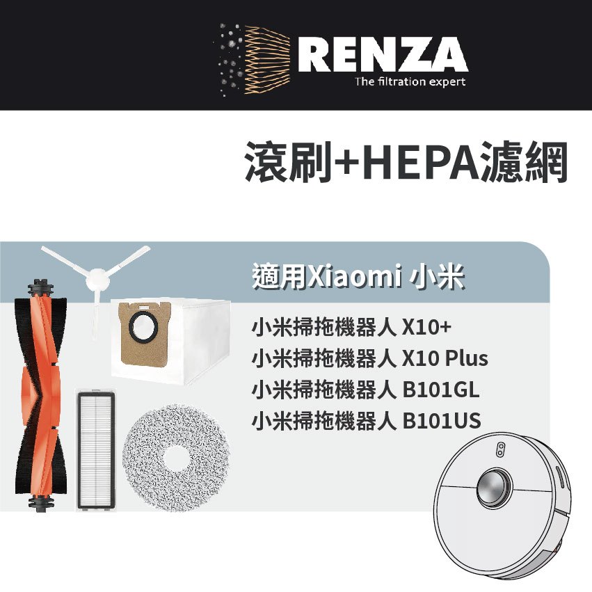 適用 小米 米家 X10+ B101GL B101US 掃拖機器人 耗材 配件 HEPA濾網 主刷 邊刷 拖布 集塵HEPA高效濾網 x 2片|滾刷主刷 x 1組|邊刷 x 3個|拖布 x 2片|集塵袋 x 2個Vacuum Cleaners & Floor Care AppliancesRenza Filtration 濾網專家