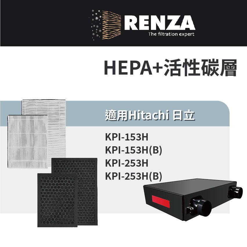 適用 Hitachi 日立 KPI-153H KPI-253H 對應PM2.5 全熱交換器 HEPA+活性碳濾網 濾芯活性碳小片x 1片|HEPA高效濾網 x 2片|蜂巢式椰殼活性碳濾網 x 2片Air TreatmentRenza Filtration 濾網專家