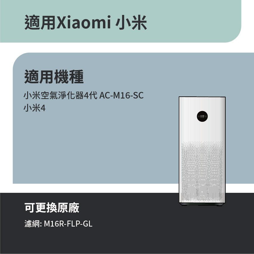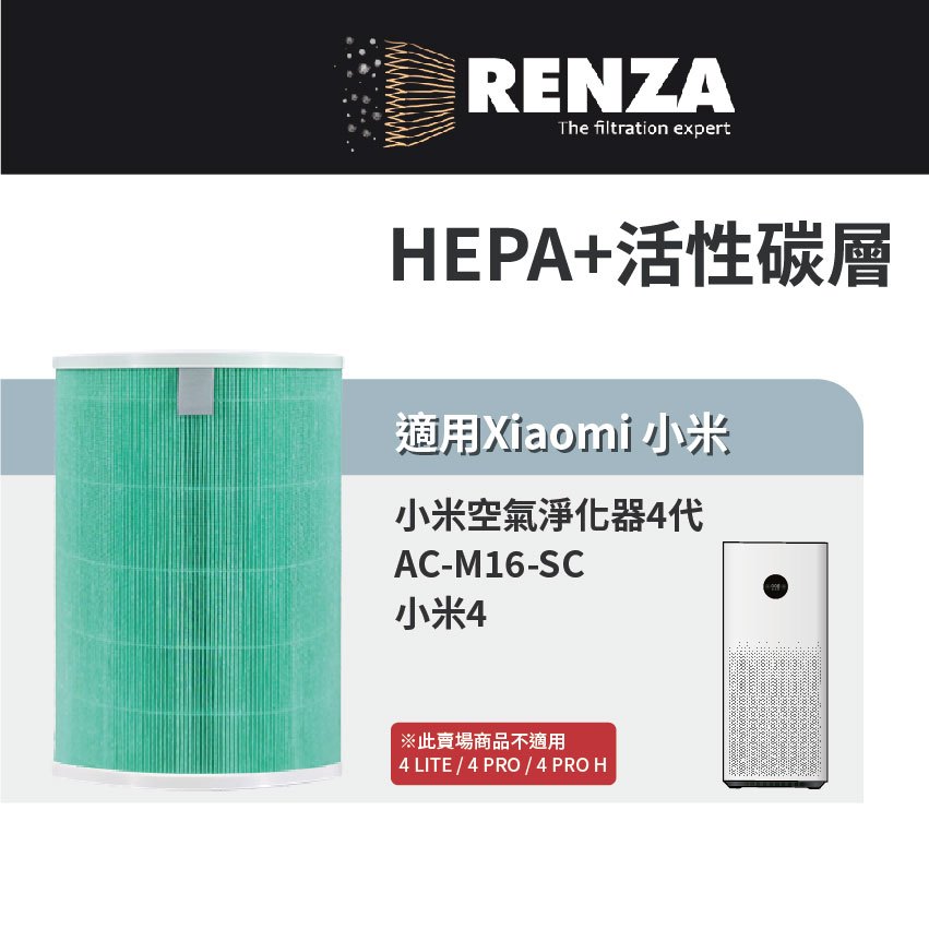 適用 Xiaomi 小米 空氣淨化器4代 小米4 AC-M16-SC 空氣清淨機 HEPA+活性碳濾網 含RFID晶片二合一濾網(超商最多一件)|⚠️此賣場商品不適用型號Air TreatmentRenza Filtration 濾網專家