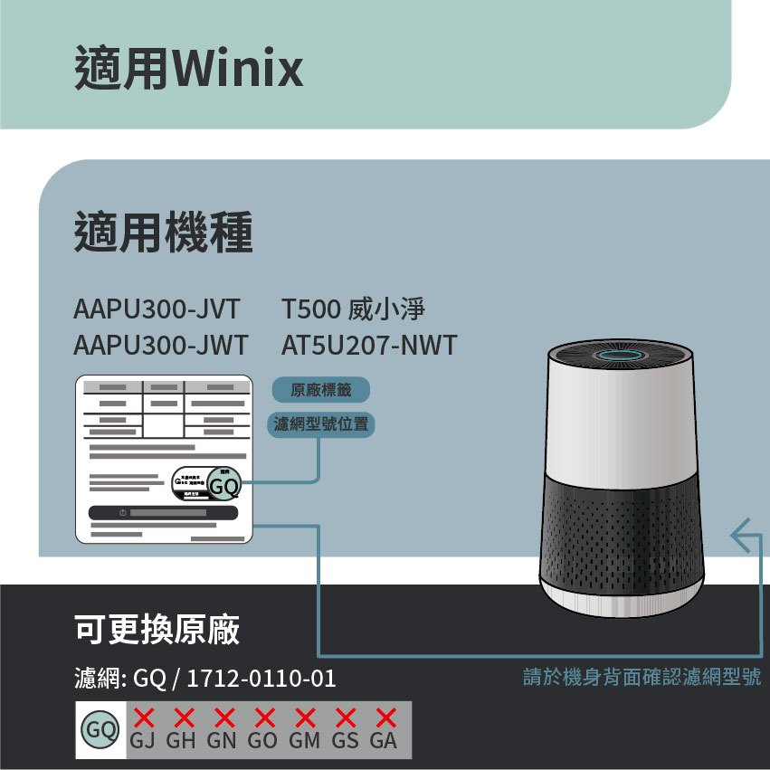適用韓國 Winix AAPU300-JVT JWT T500 威小淨 空氣清淨機 可替換GQ HEPA 活性碳濾網2合1濾網 x 1片(超商最多2件)Air TreatmentRenza Filtration 濾網專家