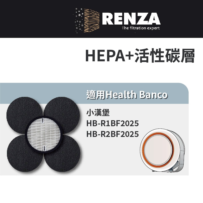 適用Health Banco小漢堡 e2F HB-R1BF2025/R2BF2025 HEPA濾網+脫臭活性碳濾網1片抗敏HEPA+4片脫臭活性碳|10片 活性碳濾網(除臭除甲醛)Air TreatmentRenza Filtration 濾網專家