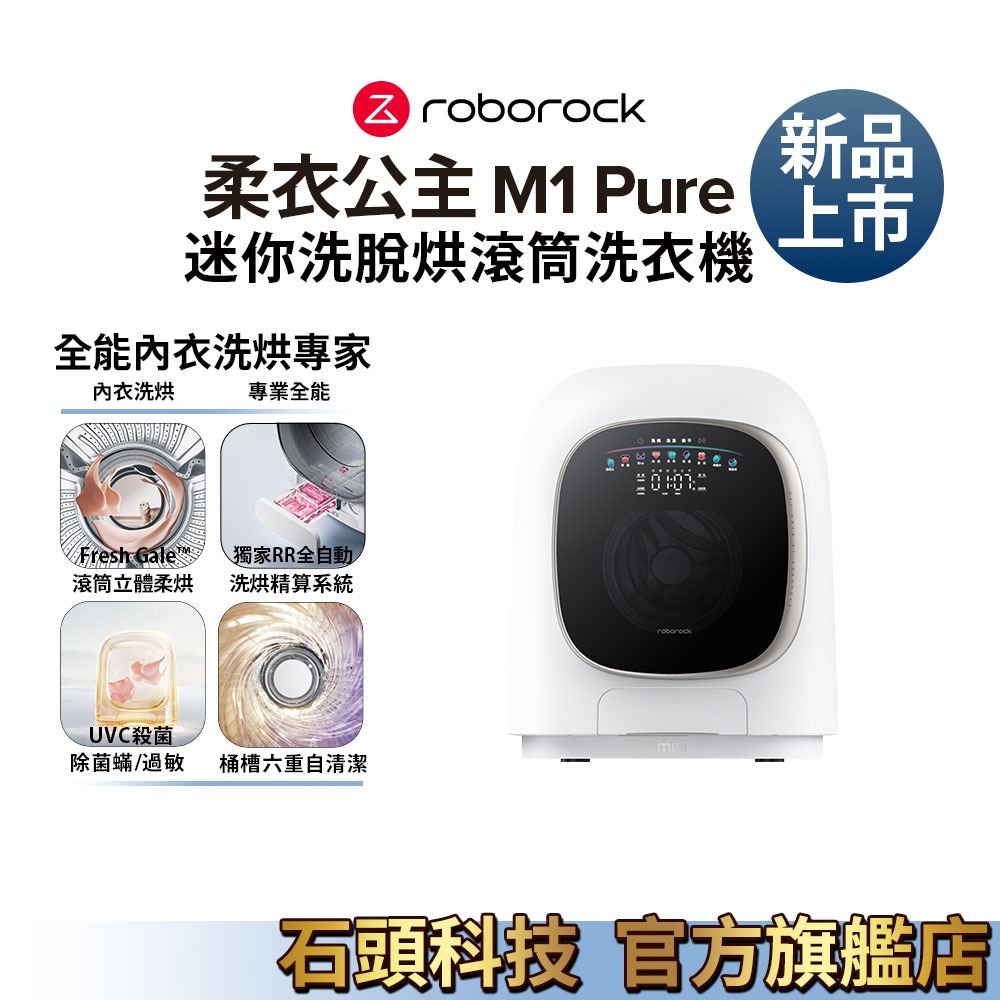 Roborock 石頭科技 柔衣公主 M1 Pure 1KG 迷你洗脫烘AI滾筒洗衣機 贈熊耳朵一組含安裝(+500元)|不含安裝Washing Machines & DryersRoborock 石頭科技官方旗艦店