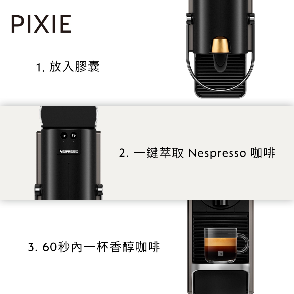 【Nespresso】膠囊咖啡機 Pixie (三色任選) & 品味經典探索禮盒120顆(贈品牌禮)Pixie極致鈦&杯盤組2只|Pixie極致鈦&膠囊展示盒|Pixie深蘊藍&杯盤組2只|Pixie深蘊藍&膠囊展示盒|Pixie紫愛你&杯盤組2只|Pixie紫愛你&膠囊展示盒Coffee Machines & AccessoriesNespresso官方旗艦店
