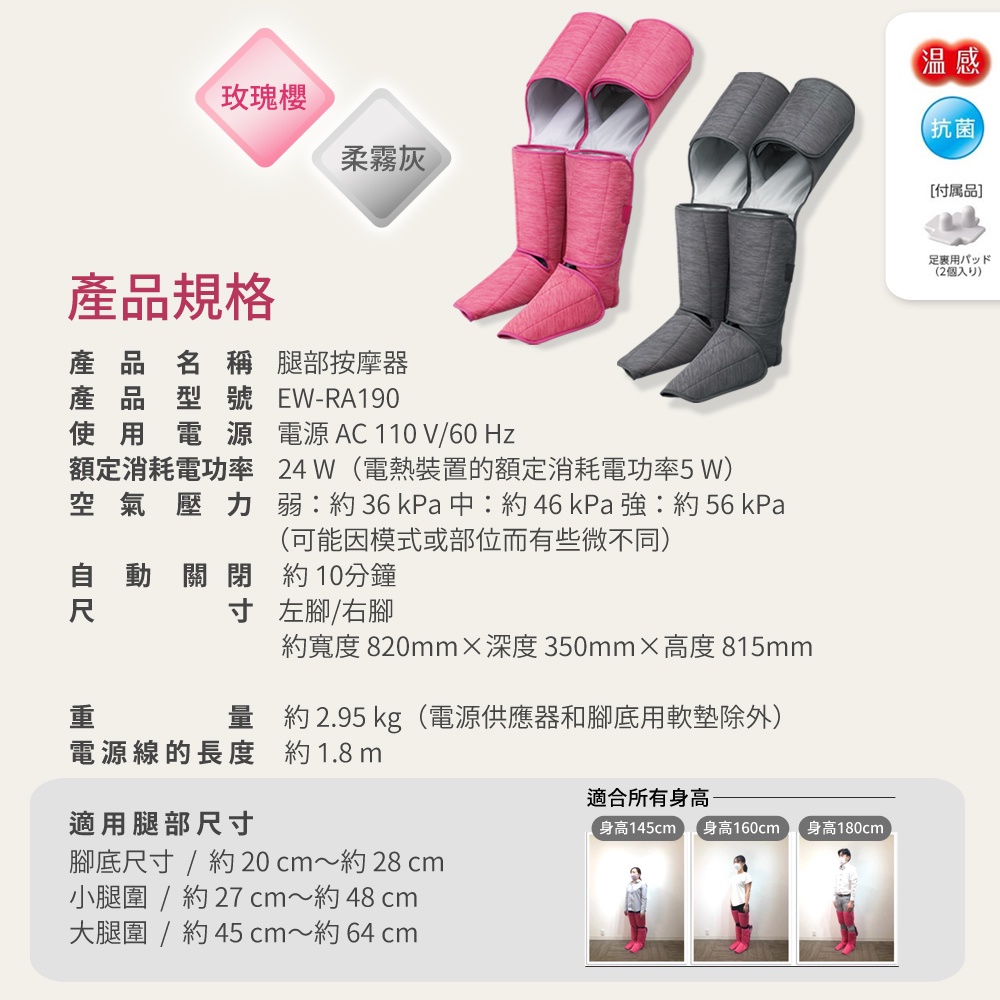 Panasonic Catwalk時尚女王美腿靴 EW-RA190 (按摩靴/按摩腿機)玫瑰櫻色|柔霧灰色OthersPanasonic 健康按摩館