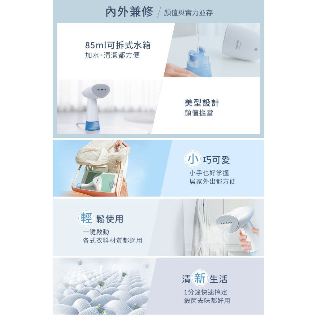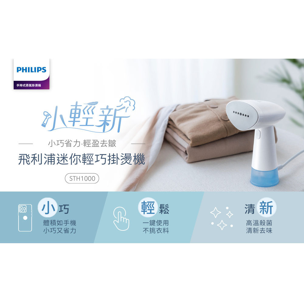 【PHILIPS 飛利浦】手持蒸氣迷你輕巧掛燙機STH1000/10(小輕新)白色Irons & SteamersPhilips 飛利浦家電旗艦館