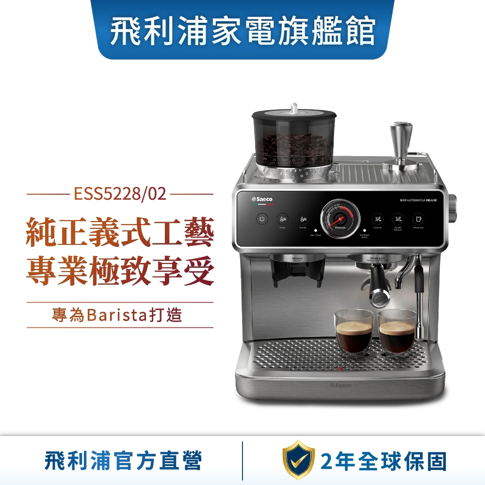 【PHILIPS 飛利浦】 半自動雙研磨義式咖啡機 ESS5228+贈湛盧豆*3包+濃縮杯2入+敲渣桶|單機Coffee Machines & AccessoriesPhilips 飛利浦家電旗艦館