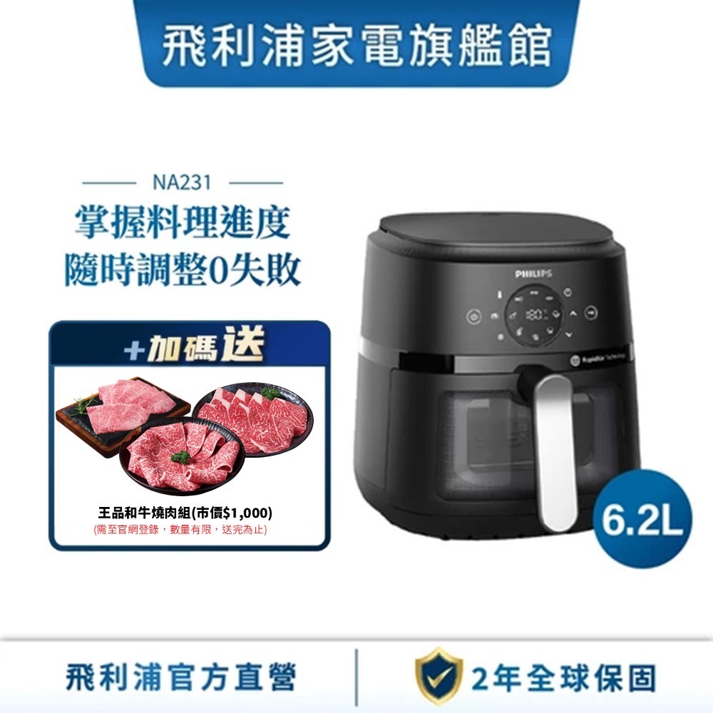 【PHILIPS 飛利浦】星樂視 透視海星氣炸鍋 – NA231 – 6.2L單機Air FryersPhilips 飛利浦家電旗艦館