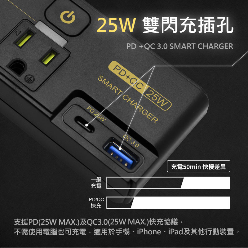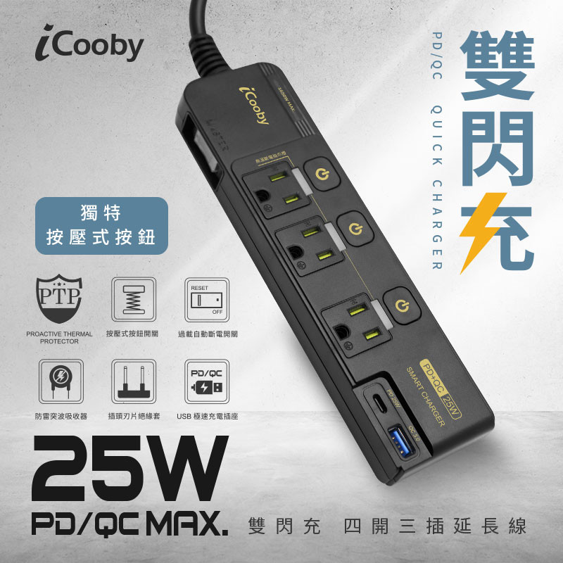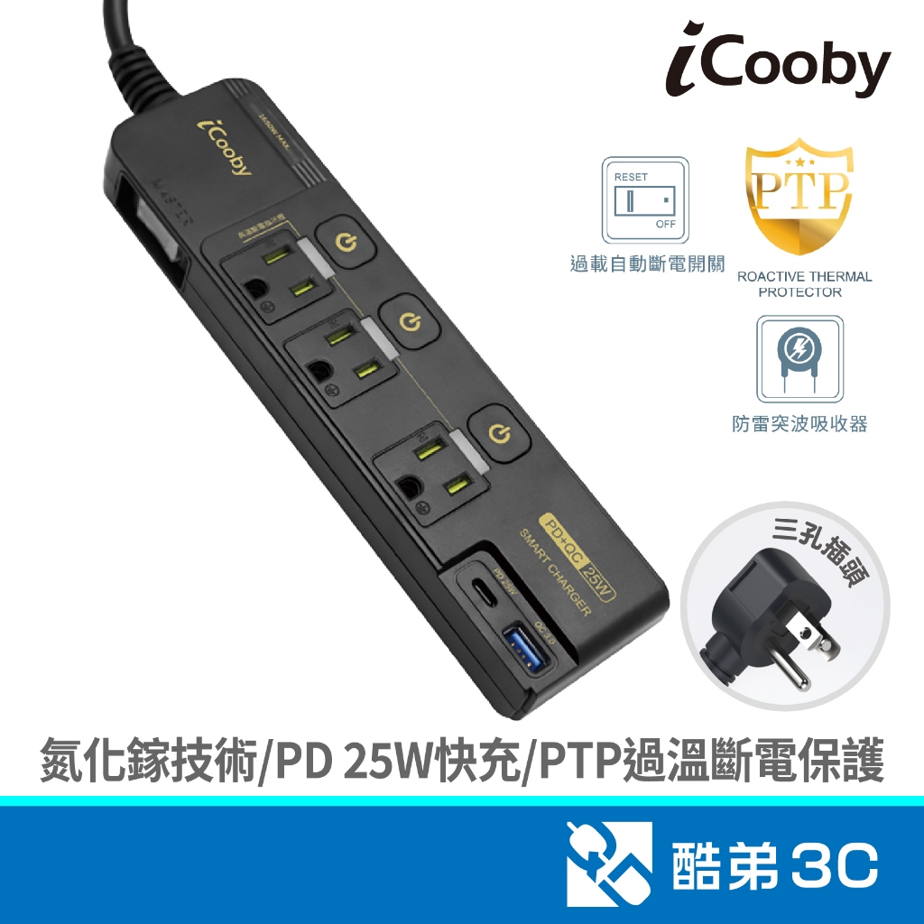iCooby NX1 PLUS四開三插 PD+QC雙快充延長線1A1C/1.8M 3孔延長線 酷弟3C