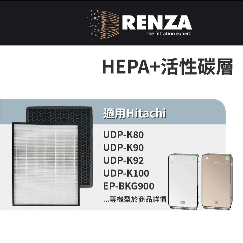 適用Hitachi日立UDP-K80 K90 K92 K100 UDP-P80 NVG70 HEPA活性碳加濕濾網 濾芯1片HEPA+1片活性碳(超商最多1組)|1片加濕濾網(不含塑膠外框)|1片蜂巢活性碳濾網(除臭除甲醛)|1片白色抗敏HEPA濾網Air TreatmentRenza Filtration 濾網專家