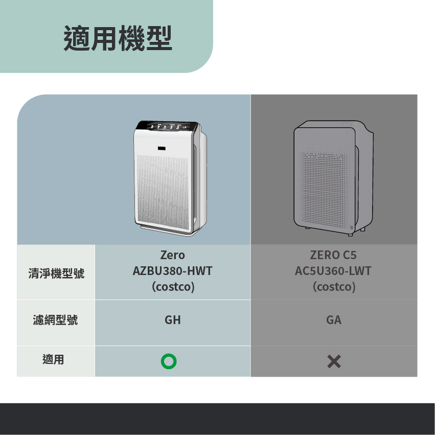 適用Winix Zero AZBU380-HWT空氣清淨機(Costco) 好市多 可替代GH HEPA活性碳濾網 濾芯