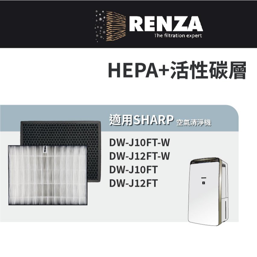 適用Sharp 夏普DW-J10FT-W DW-J12FT-W 清淨除濕機 FZ-J10HFT J10DFT 濾網 濾芯1片抗敏HEPA|1片蜂巢活性碳(除臭除甲醛)|1片抗敏HEPA+1片蜂巢活性碳Air TreatmentRenza Filtration 濾網專家