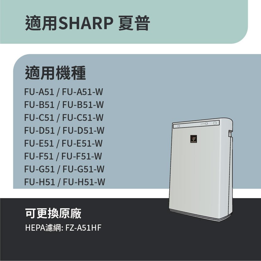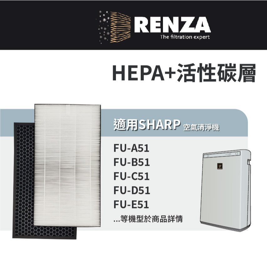 適用Sharp夏普 FU-A51 B51 C51 D51 E51 F51 G51 H51 空氣清淨機 HEPA活性碳濾網1片抗敏HEPA+1片蜂巢活性碳|1片抗敏HEPA濾網|1片蜂巢活性碳濾網(除臭除甲醛)Air TreatmentRenza Filtration 濾網專家
