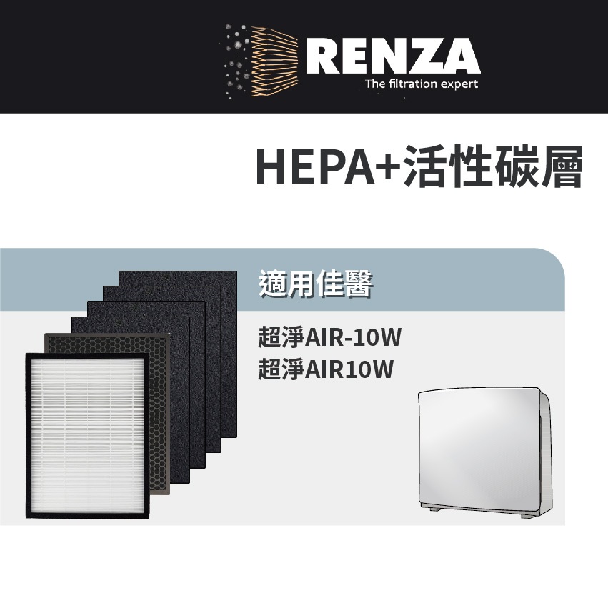 適用佳醫超淨 AIR-10W AIR10W SF-10 HEPA-10 CO-10 HEPA+活性碳 濾網 濾芯 濾心4片前置活性碳(第一層)|1片HEPA+1片活性碳+4片碳棉|1片HEPA濾網(第二層)|1片活性碳濾網(第三層)Air TreatmentRenza Filtration 濾網專家