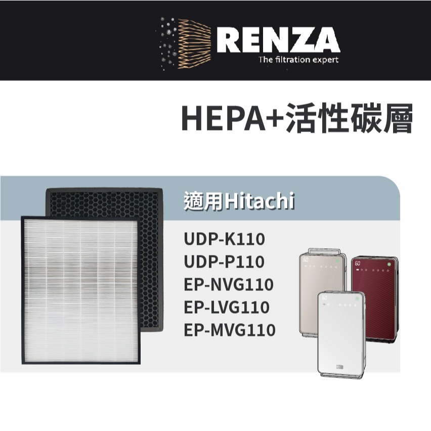 適用Hitachi日立 UDP-K110 EP-MVG110 NVG110 UDP-P110 HEPA+活性碳 加濕濾網1片蜂巢活性碳濾網(除臭除甲醛)|1片抗敏HEPA濾網|1片抗敏HEPA+活性碳(超商最多1組)|1片加濕濾網(不含塑膠外框)Air TreatmentRenza Filtration 濾網專家