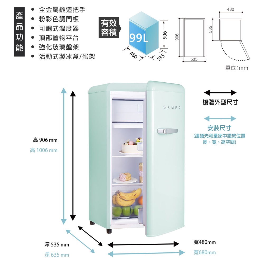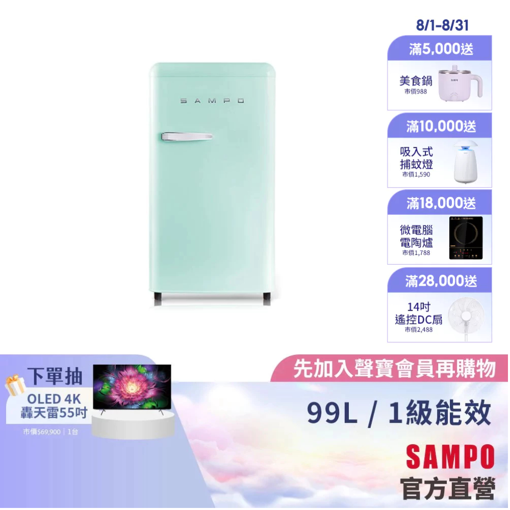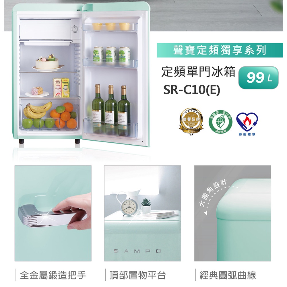 SAMPO聲寶 99L 歐風美型系列定頻單門冰箱-香氛綠 SR-C10(E)-含基本運送+安裝+回收舊機一般品|限時特賣RefrigeratorsSAMPO聲寶 官方直營店