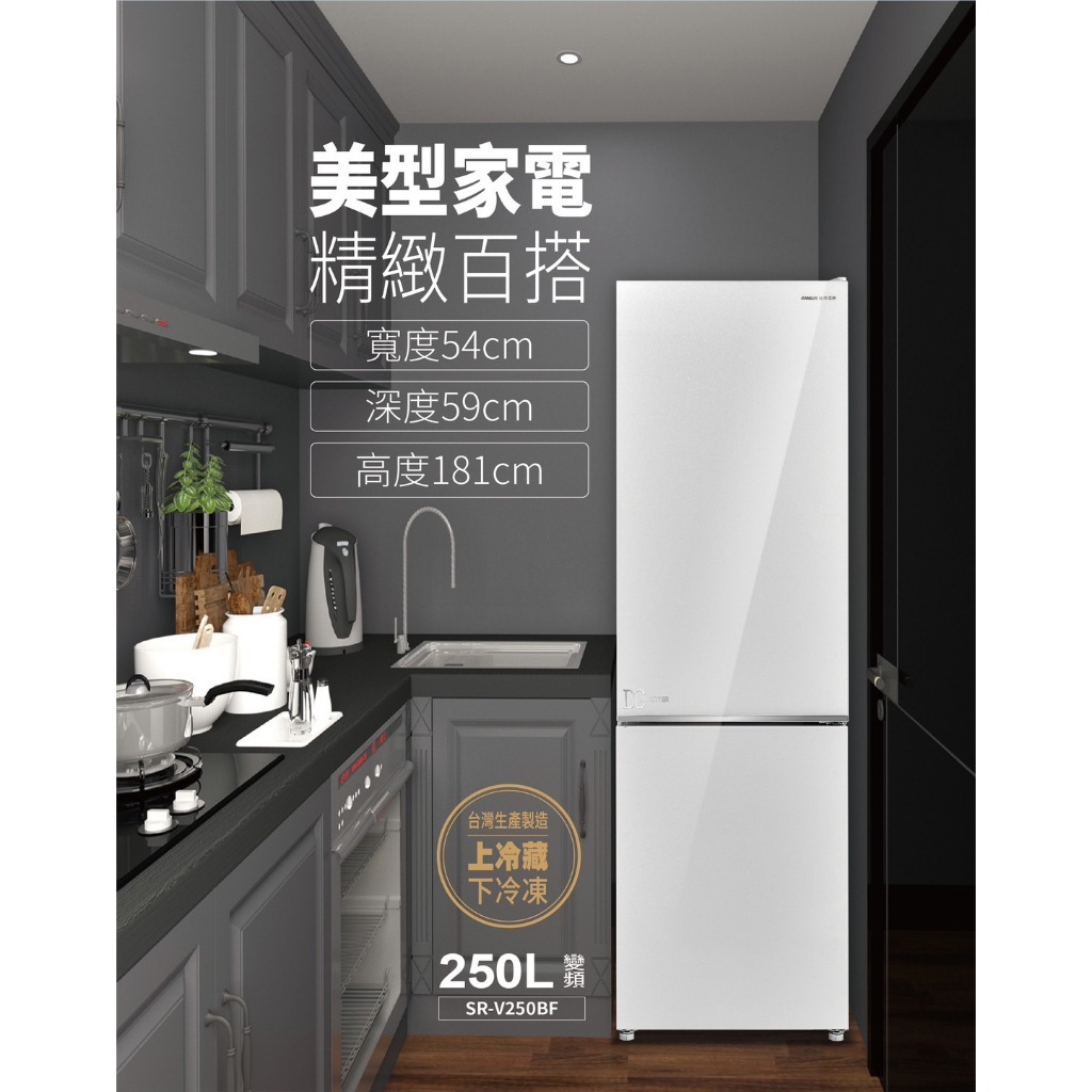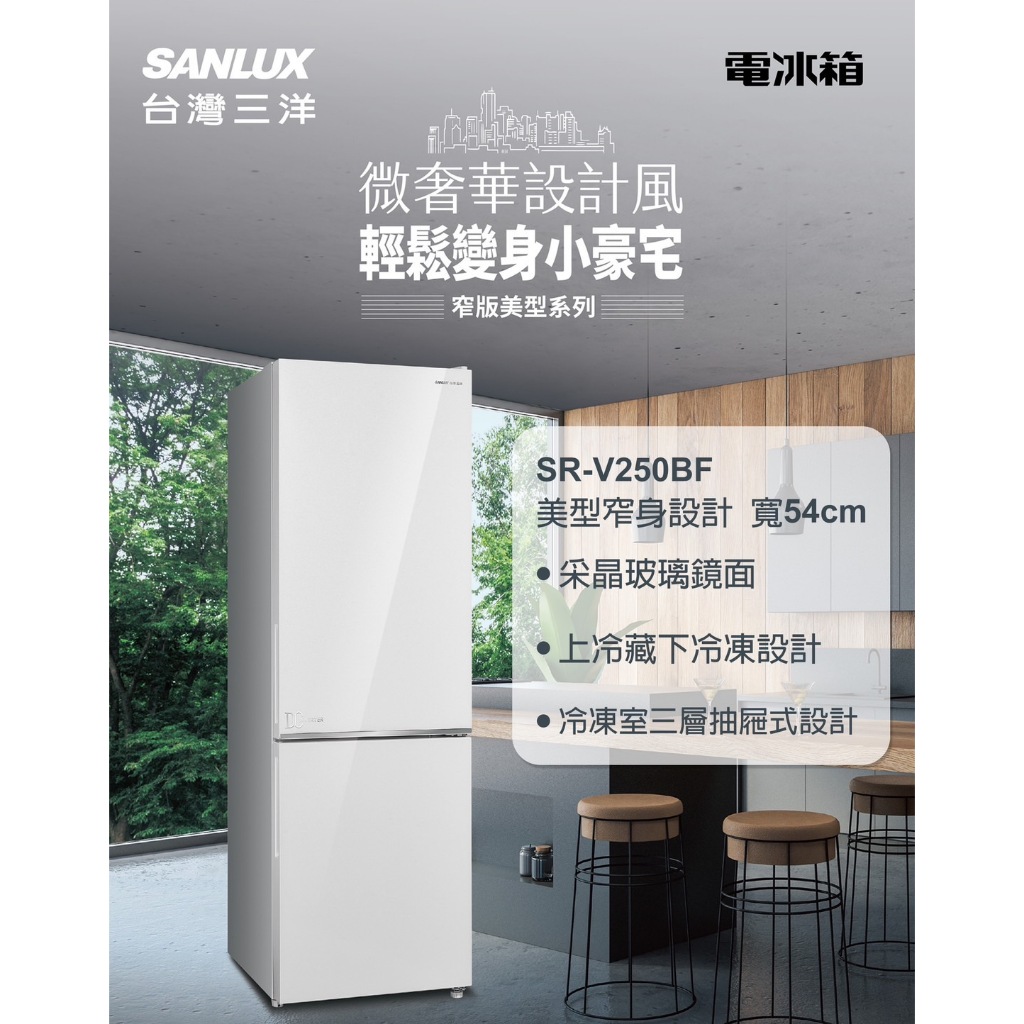 SANLUX 台灣三洋 250L 一級 采晶變頻雙門冰箱 上冷藏/下冷凍 SR-V250BF (聊聊享優惠)SANLUX 台灣三洋 250L 一級 采晶變頻雙門冰箱 上冷藏/下冷凍 SR-V250BF (聊聊享優惠)RefrigeratorsSANLUX台灣三洋館