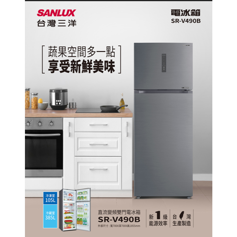 SANLUX 台灣三洋 490公升雙門變頻冰箱 SR-V490B(聊聊享優惠)SANLUX 台灣三洋 490公升雙門變頻冰箱 SR-V490B(聊聊享優惠)RefrigeratorsSANLUX台灣三洋館