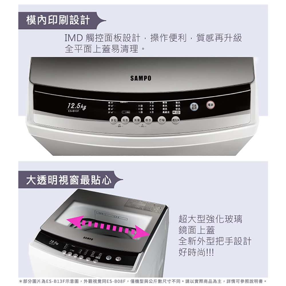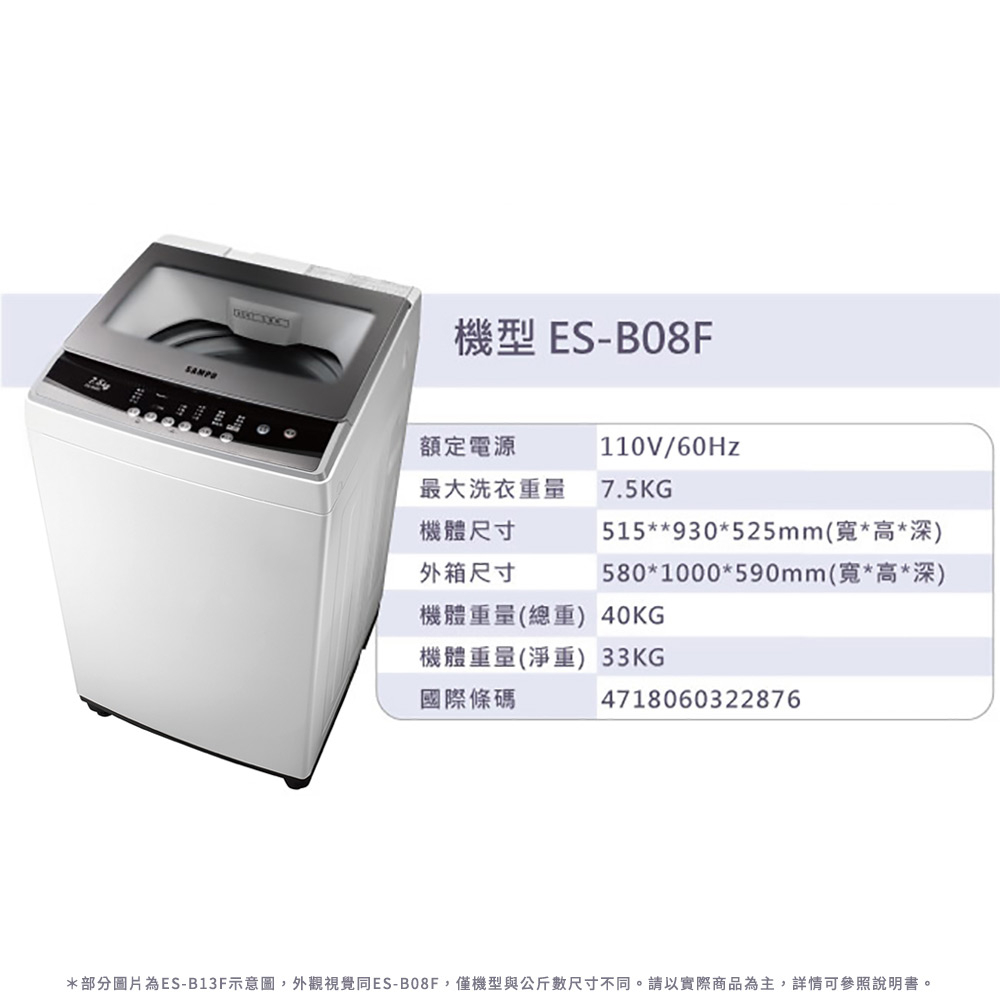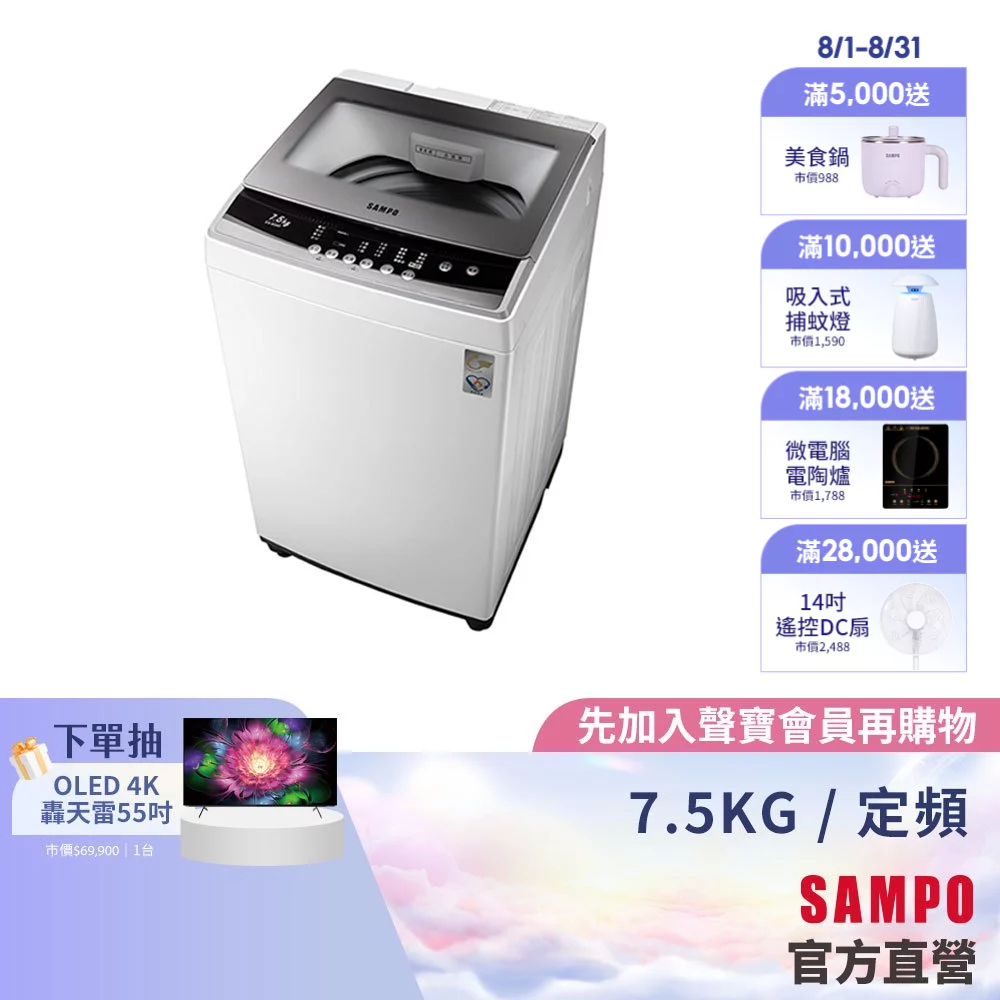 SAMPO聲寶 7.5KG 金級小貴族系列定頻洗衣機-珍珠白 ES-B08F-含基本運送+安裝+回收舊機一般品Washing Machines & DryersSAMPO聲寶 官方直營店
