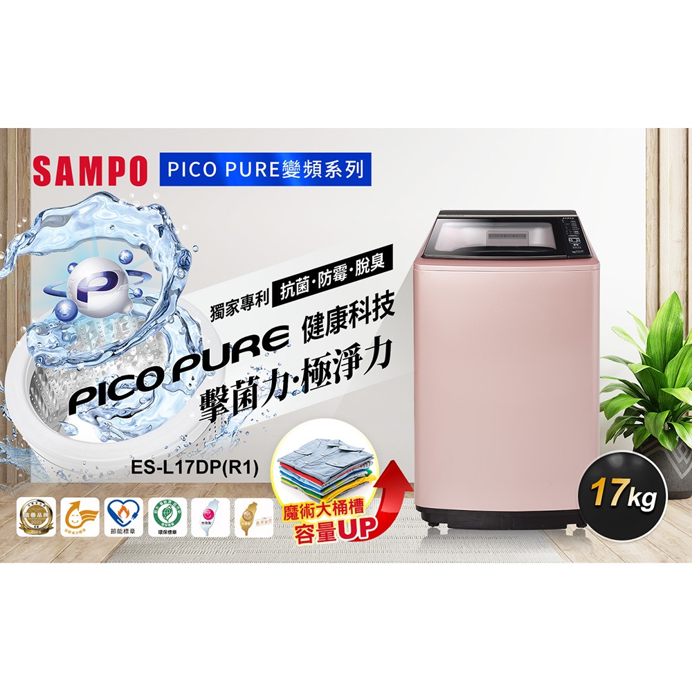 SAMPO聲寶 17Kg PICO PURE超震波變頻洗衣機ES-L17DP(R1)-含基本安裝、舊機回收SAMPO聲寶 17Kg PICO PURE超震波變頻洗衣機ES-L17DP(R1)-含基本安裝、舊機回收Washing Machines & DryersSAMPO聲寶 官方直營店