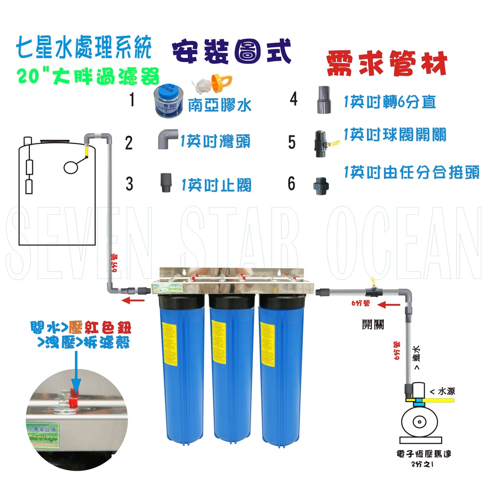 20英吋大胖三管白鐵304淨水器+購套裝濾心水塔過濾器地下水處理地下水貨號:50482720英吋大胖三管白鐵304淨水器+購套裝濾心水塔過濾器地下水處理地下水貨號:504827Water Filters, Coolers & DispensersOCEANSTAR