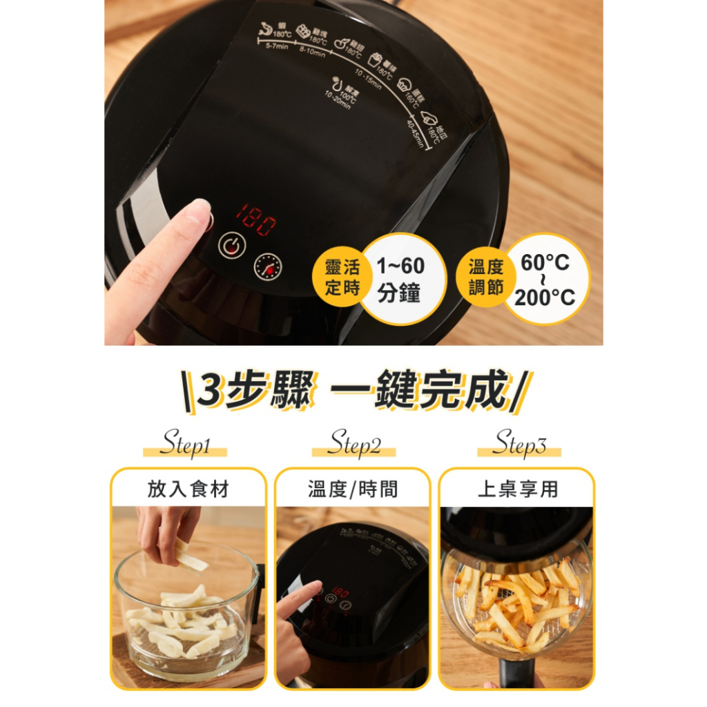 【one-meter】2L 可視玻璃空氣炸鍋 OBO-25025GF|3D氣旋 無油炸鍋|科技黑 烘炸料理神器【one-meter】2L 可視玻璃空氣炸鍋 OBO-25025GF|3D氣旋 無油炸鍋|科技黑 烘炸料理神器Air Fryersone-meter官方旗艦店