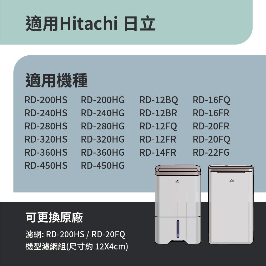 適用Hitachi日立 RD-12BQ/BR/FQ/FR 14FR 16FQ/FR 20FR/FQ 22FG 除濕機濾網適用Hitachi日立 RD-12BQ/BR/FQ/FR 14FR 16FQ/FR 20FR/FQ 22FG 除濕機濾網Air TreatmentRenza Filtration 濾網專家