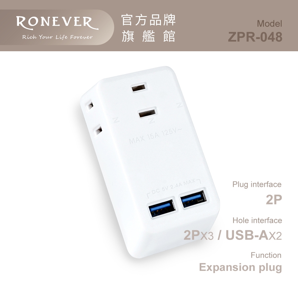 RONEVER ZPR-048 / USB小壁插ZPR-048Electric Sockets & Extension CordsRONEVER 官方品牌館
