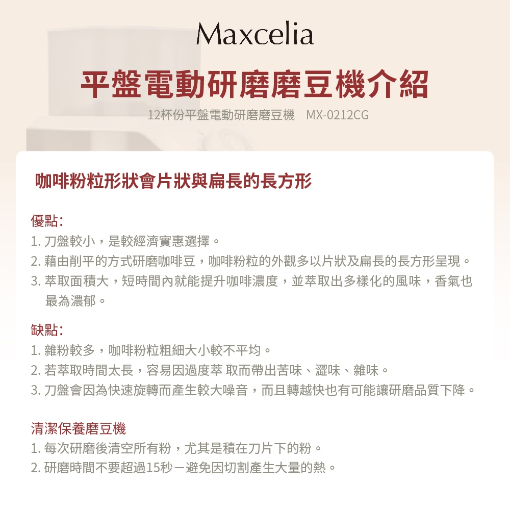 日本瑪莎利亞Maxcelia12杯份平盤電動研磨磨豆機MX-0212CG日本瑪莎利亞Maxcelia12杯份平盤電動研磨磨豆機MX-0212CGCoffee Machines & AccessoriesRUYUHOUSE