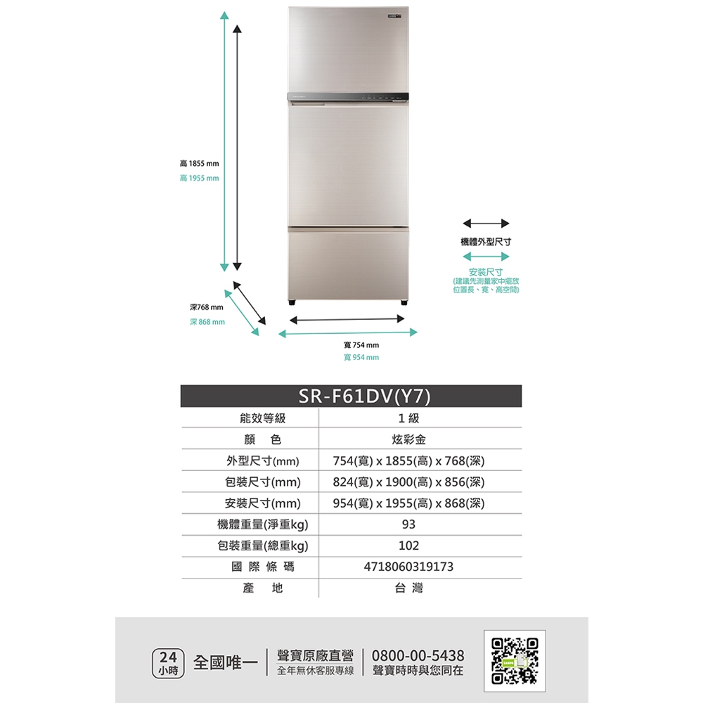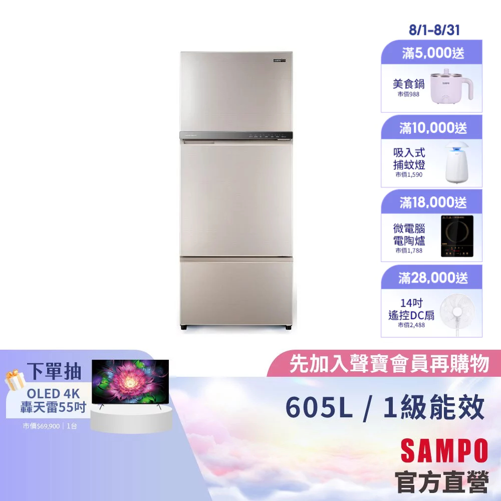SAMPO聲寶 605L星美滿1級變頻3門冰箱 SR-F61DV(Y7)-含基本安裝+舊機回收SAMPO聲寶 605L星美滿1級變頻3門冰箱 SR-F61DV(Y7)-含基本安裝+舊機回收RefrigeratorsSAMPO聲寶 官方直營店