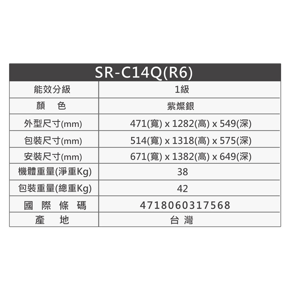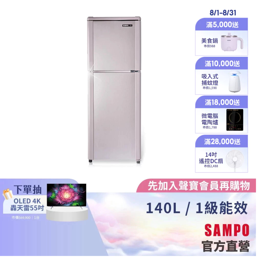 SAMPO聲寶 140L 經典系列定頻雙門冰箱-紫燦銀 SR-C14Q(R6)-含基本運送+安裝+回收舊機