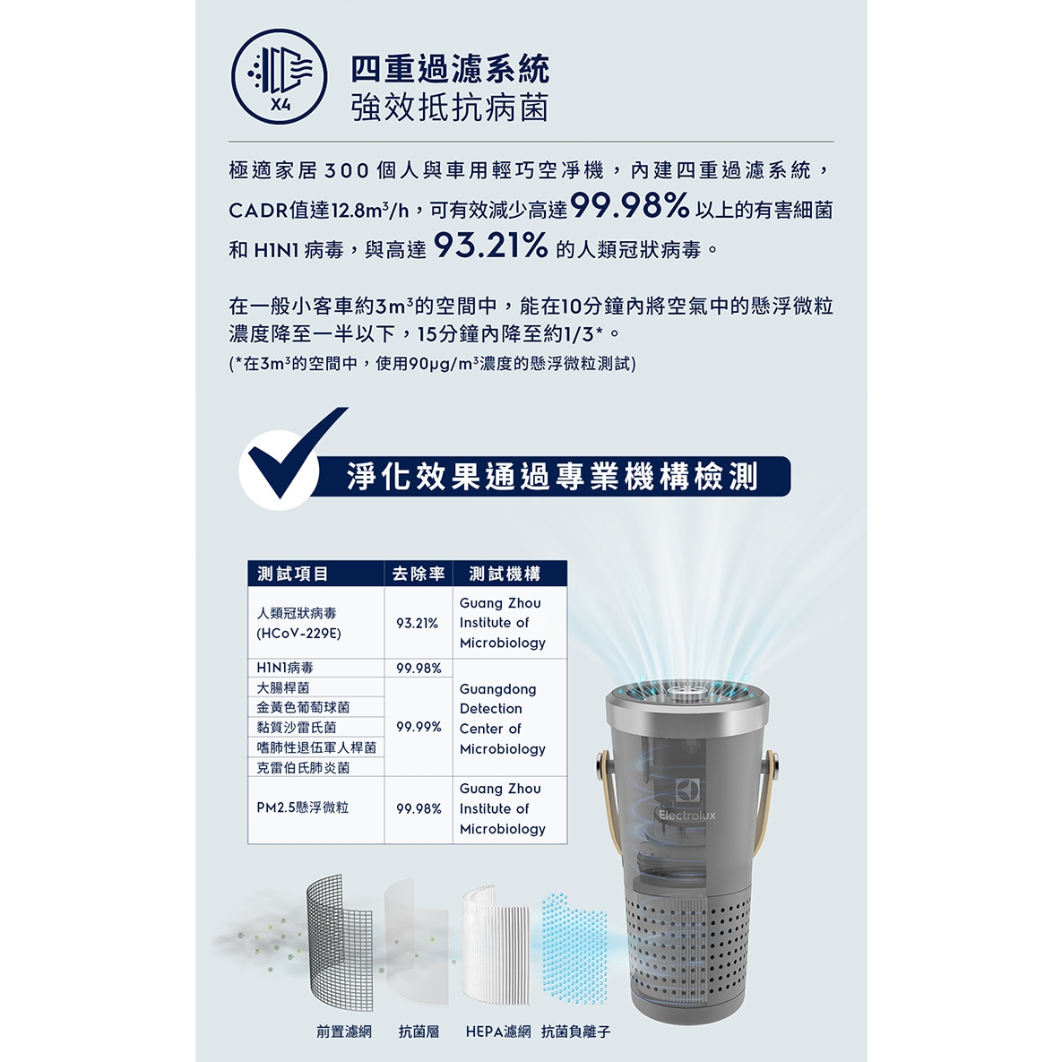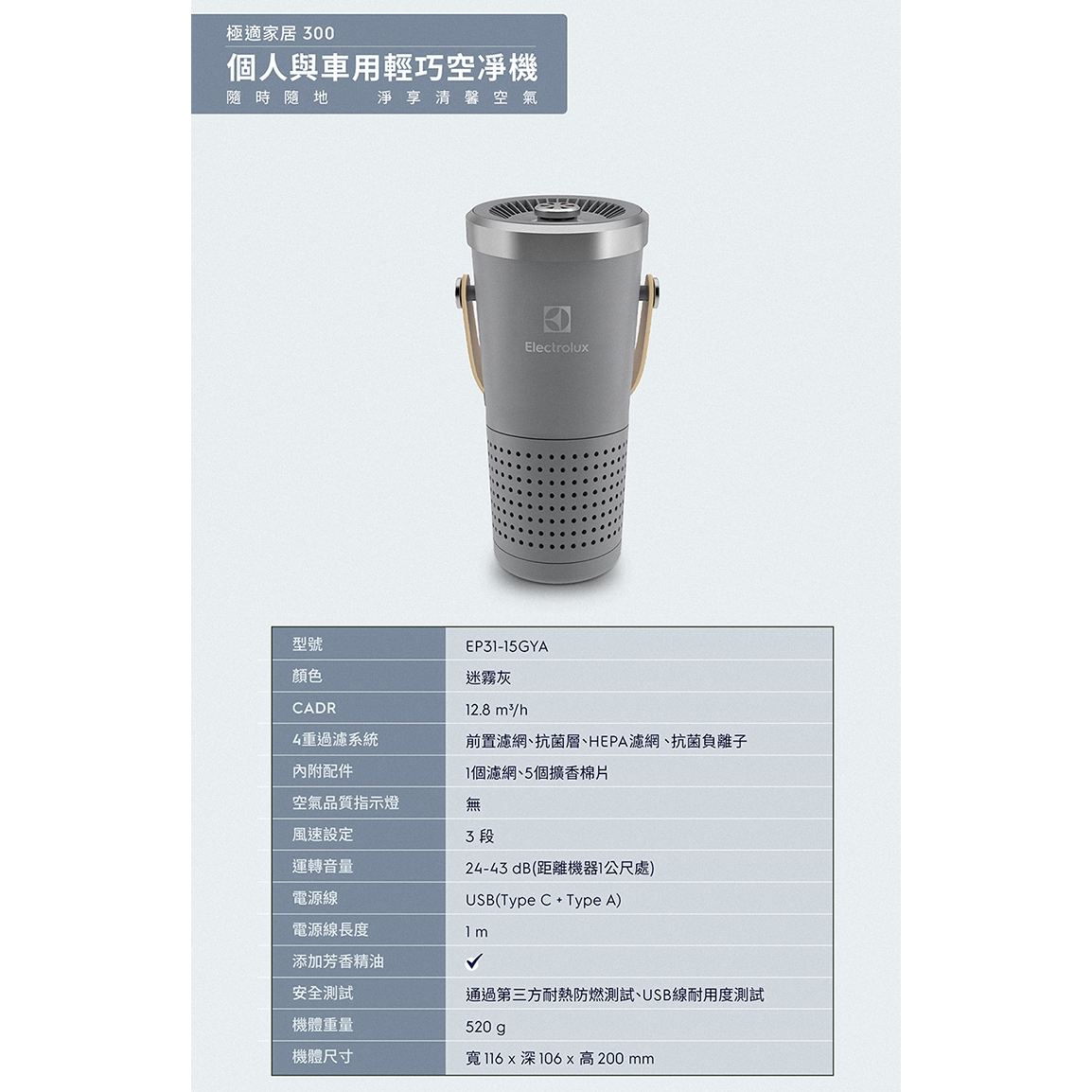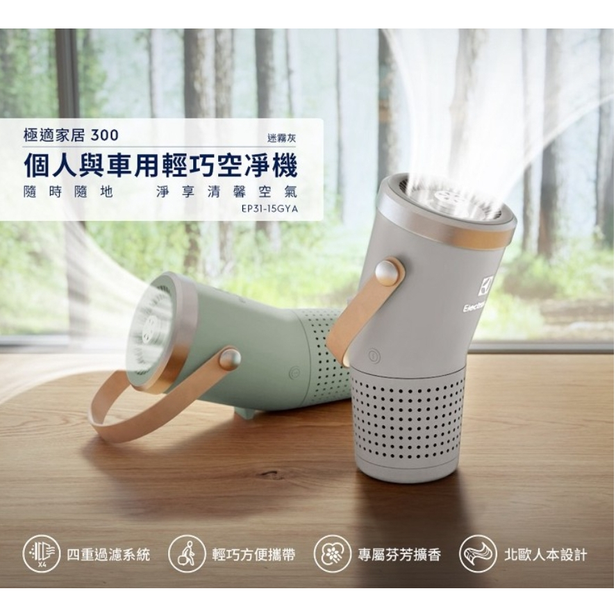 伊萊克斯 個人與車用輕巧空氣清淨機 Electrolux EP31-15GYA EP31-15GRAEP31-15GYA 迷霧灰|EP31-15GRA 海洋綠Air TreatmentSL 3C數位生活館