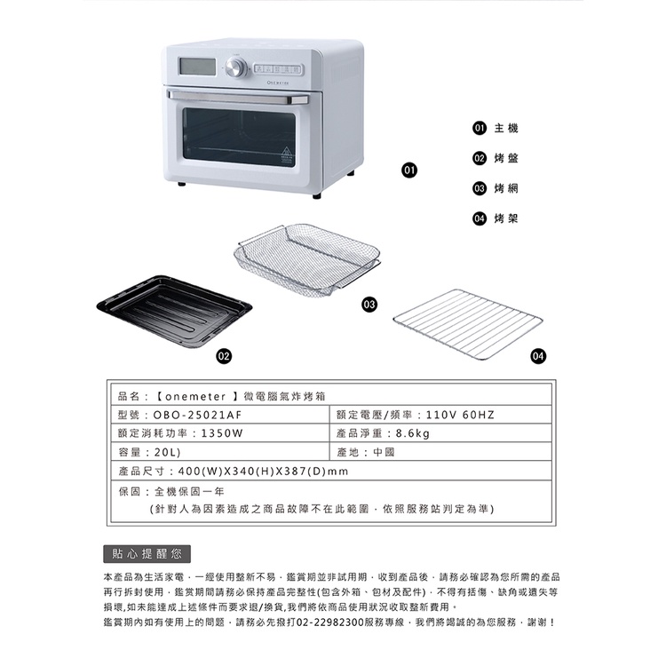 one-meter 多功能微電腦氣炸烤箱 OBO-25021AF 麵包 比薩 氣炸新品|福利品(9成新)Ovensone-meter官方旗艦店