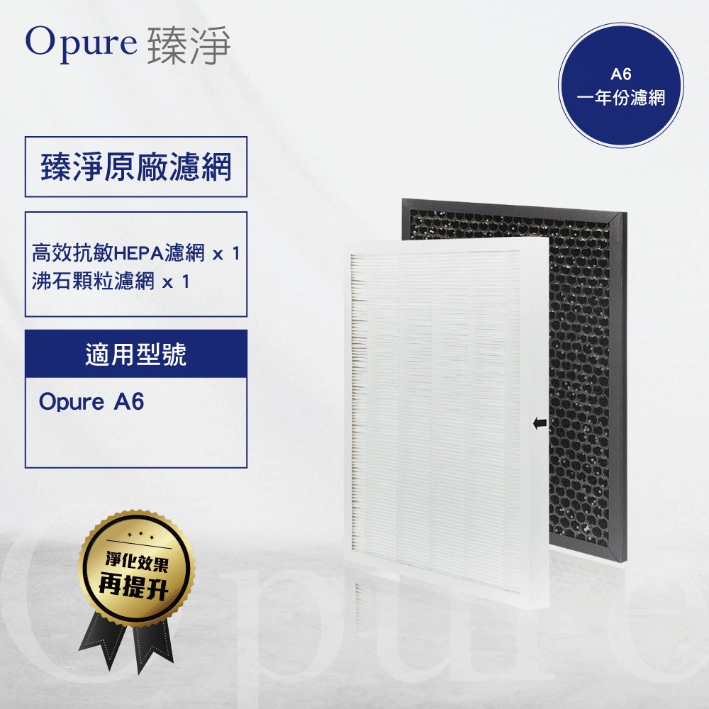 【Opure 臻淨原廠濾網】A6 一年份濾網組 高效抗敏HEPA空氣清淨機適用3M ac-501H一年份|兩年份Air TreatmentOpure 臻淨科技