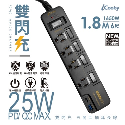 iCooby PX4 PLUS五開四插 PD+QC雙快充延長線 1.8M 3孔延長線 酷弟3CiCooby PX4 PLUS五開四插 PD+QC雙快充延長線 1.8M 3孔延長線 酷弟3CElectric Sockets & Extension CordsQD 酷弟3C