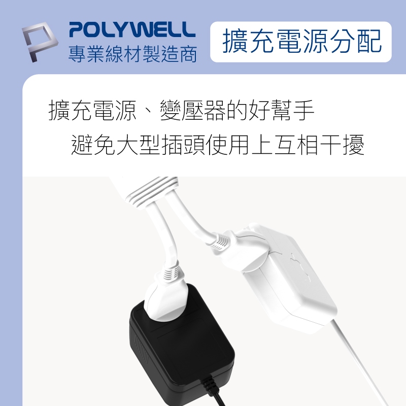 POLYWELL 一對多頭電源線組 1對2 1對3 1對4 可轉向插座 台灣製造 過載保護 自動斷電 寶利威爾 台灣現貨1對2|1對3|1對4Electric Sockets & Extension CordsPOLYWELL寶利威爾官方旗艦店