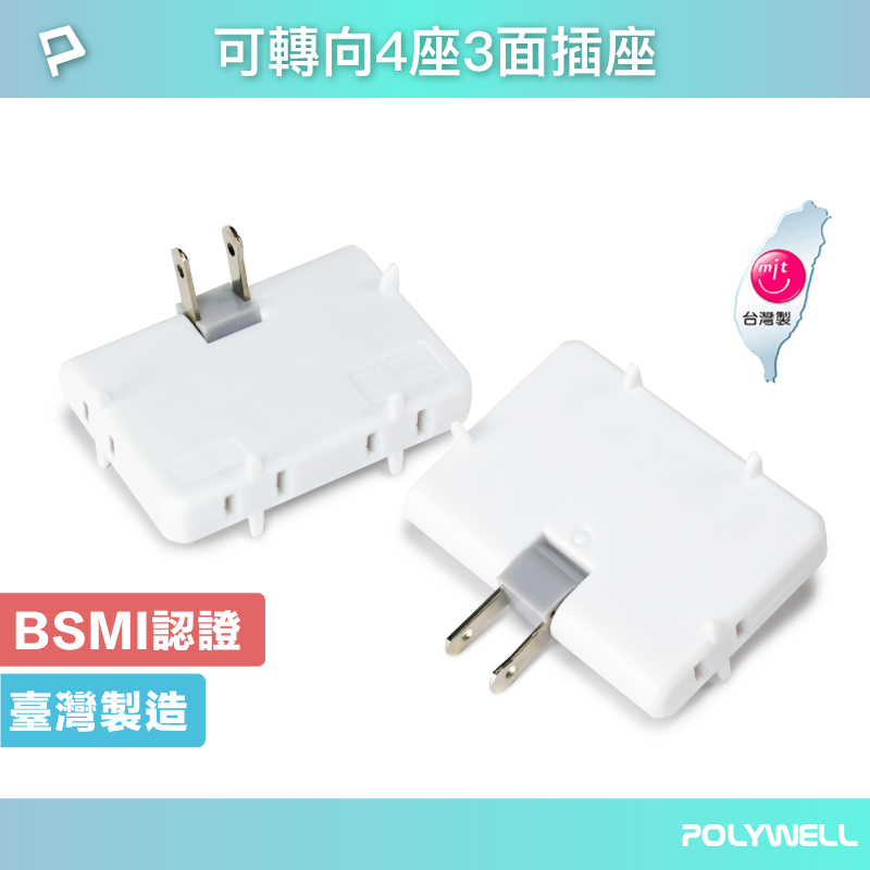 POLYWELL 可轉向4座3面插頭 防火材質 體積小 台灣製造MIT BSMI認證 寶利威爾 台灣現貨