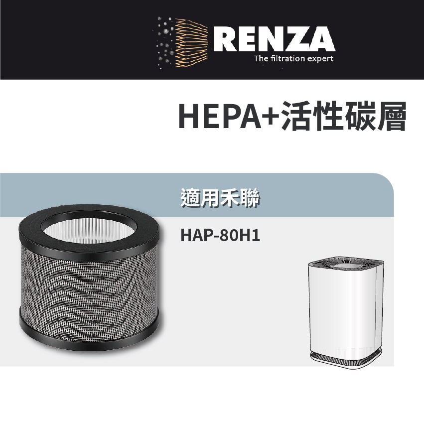 適用HERAN禾聯 HAP-80H1空氣清淨機 HAP-80H3 80H-HCP HEPA活性碳2合1濾網 濾芯HAP-80H1濾網 (超商最多3件)Air TreatmentRenza Filtration 濾網專家