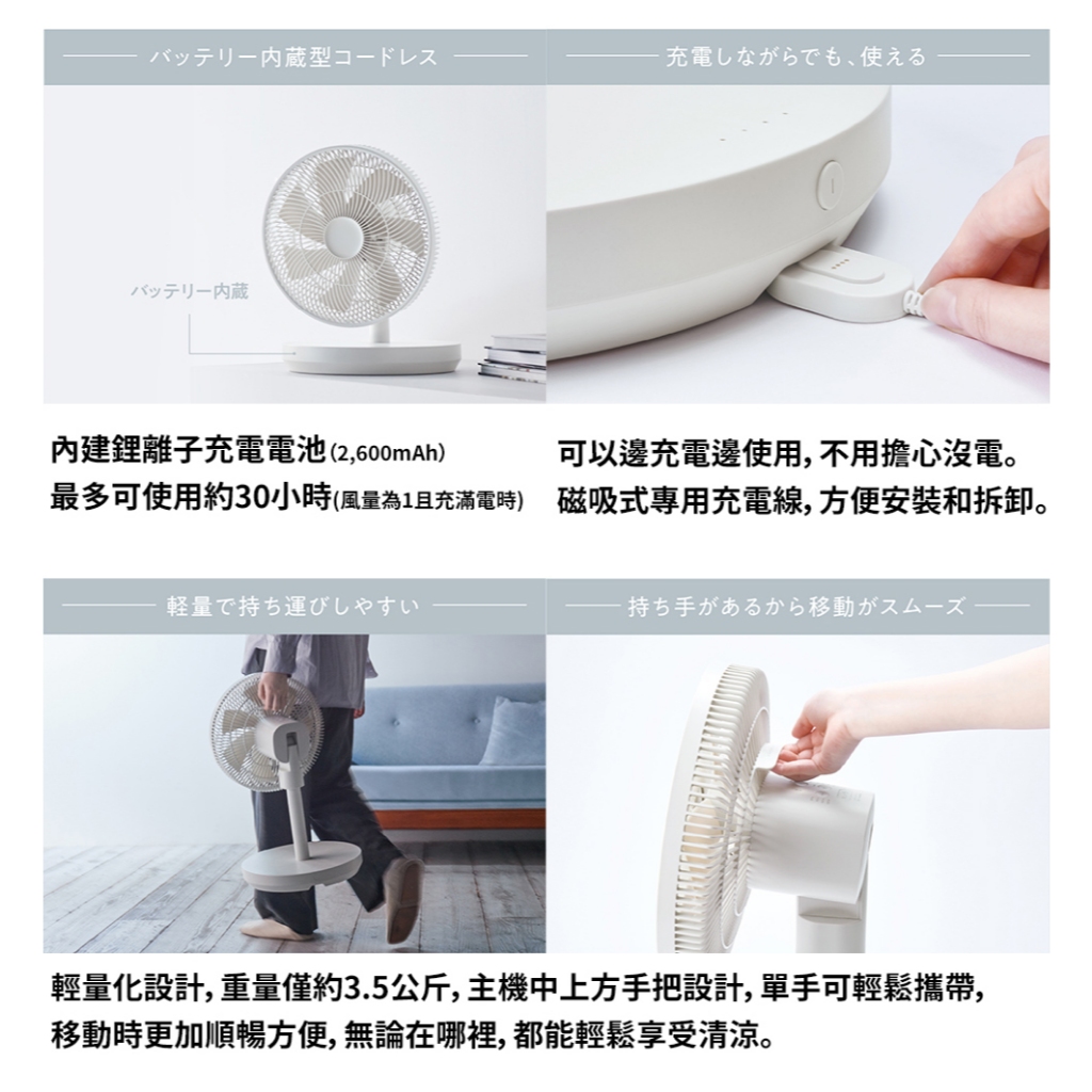 日本 recolte 無線循環電風扇 兩小無拆扇 Cordless Fan RFN-2 DC 充電 麗克特官方旗艦店奶油白|微霧灰Coolingrecolte 麗克特 官方旗艦館