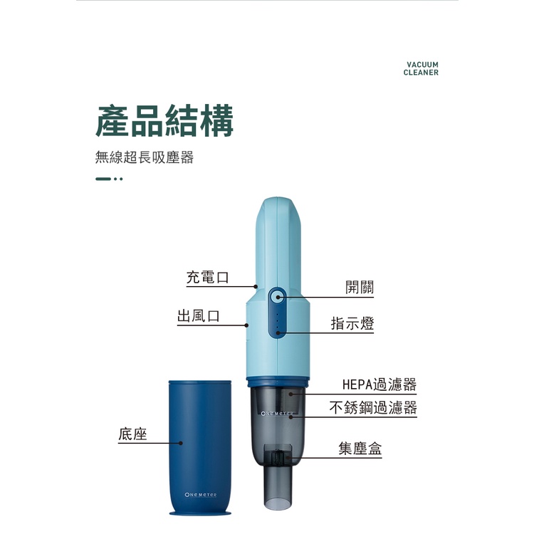 one-meter 無線超長手持充電吸塵器 HEPA濾網(適用OVC-0911PL)海沫藍|沙葵綠Othersone-meter官方旗艦店
