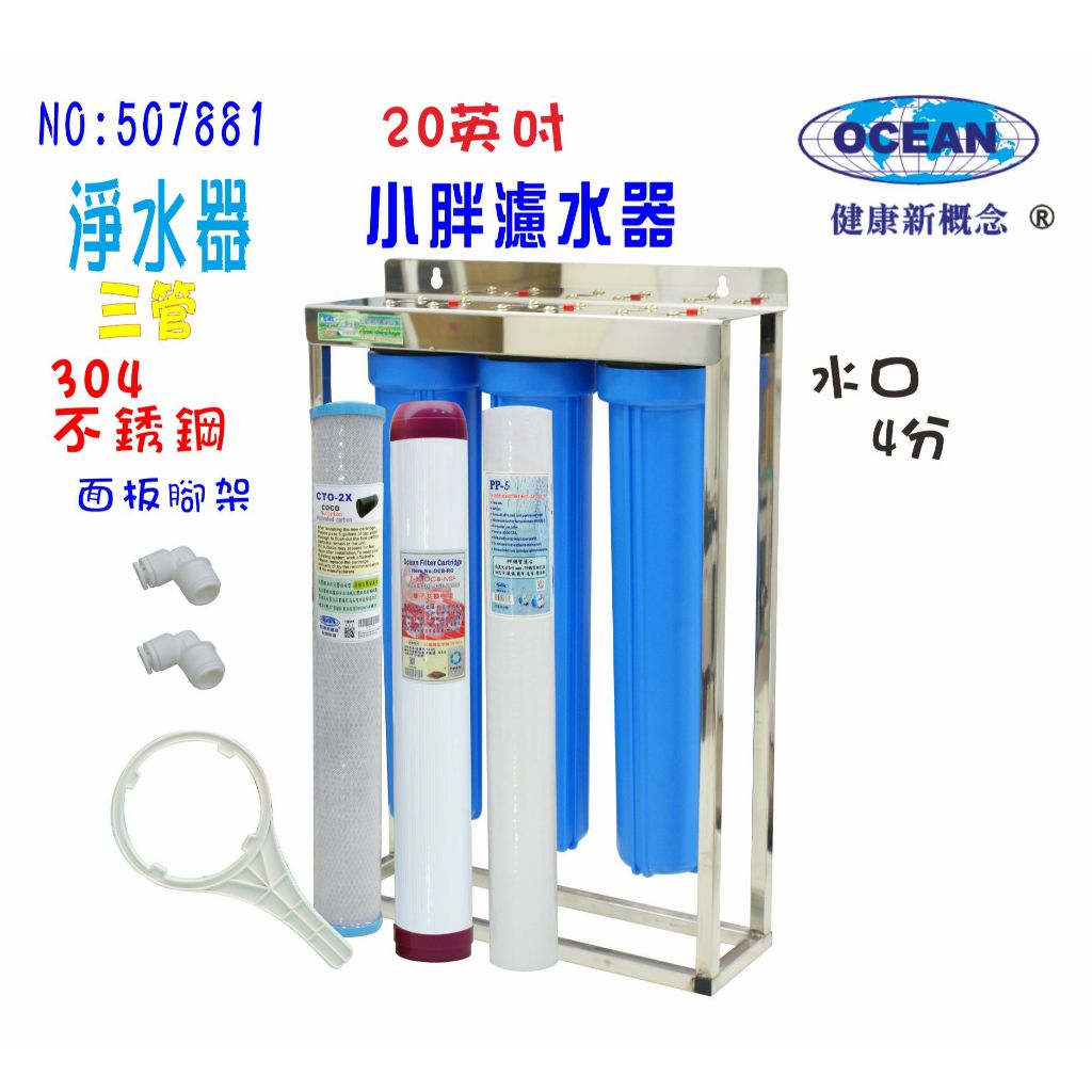 餐飲店淨水器20英吋小胖三管濾水器濾心304白鐵腳架濾殼組.地下水水塔過濾器貨號:507881全藍殼4分|全藍殼6分|一透一藍4分|一透一藍6分Water Filters, Coolers & DispensersOCEANSTAR