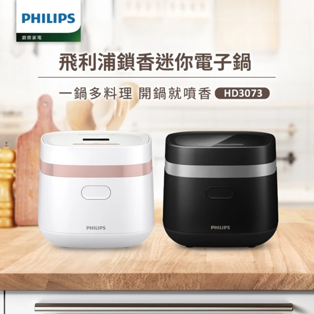 【Philips 飛利浦】鎖香迷你電子鍋 HD3073 小香鍋雲朵白HD3073/50|芝麻黑HD3073/51Rice CookersPhilips 飛利浦家電旗艦館