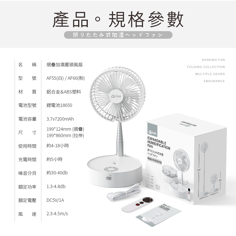 【Arlink雅聯】小雪/小櫻同學 摺疊加濕 伸縮擺頭風扇〔露營 USB充電折疊風扇 直立扇 伸縮風扇 落地扇〕原廠直送白色|粉色CoolingPhilo飛樂|arlink雅聯【官方旗艦店】