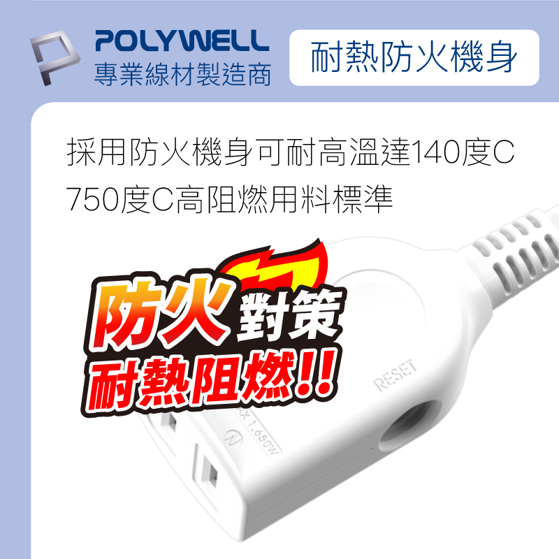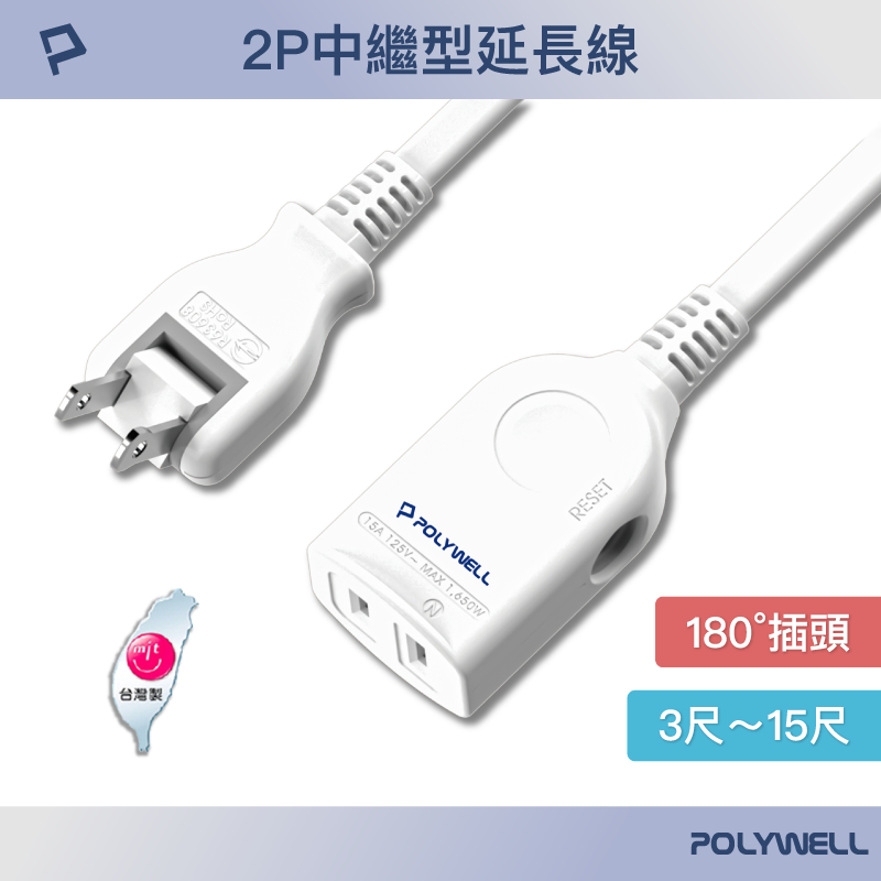 POLYWELL 2P中繼型電源延長線 單插座延長線 台灣製造MIT 過載保護 防火材質 自動斷電 寶利威爾 台灣現貨3尺 (90公分)|6尺 (180公分)|9尺 (270公分)|12尺 (360公分)|15尺 (450公分)Electric Sockets & Extension CordsPOLYWELL寶利威爾官方旗艦店