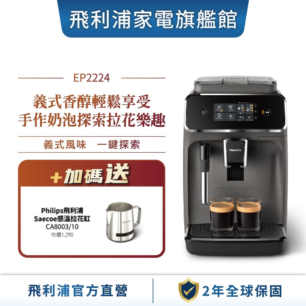【PHILIPS 飛利浦】全自動義式咖啡機 EP2224/10 + CA8003/10 感溫拉花缸EP2224+贈感溫拉花缸Coffee Machines & AccessoriesPhilips 飛利浦家電旗艦館
