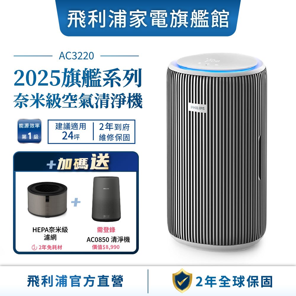 【PHILIPS 飛利浦】奈米級空氣清淨機 AC3220 適用24坪 買大送小【PHILIPS 飛利浦】奈米級空氣清淨機 AC3220 適用24坪 買大送小Air TreatmentPhilips 飛利浦家電旗艦館