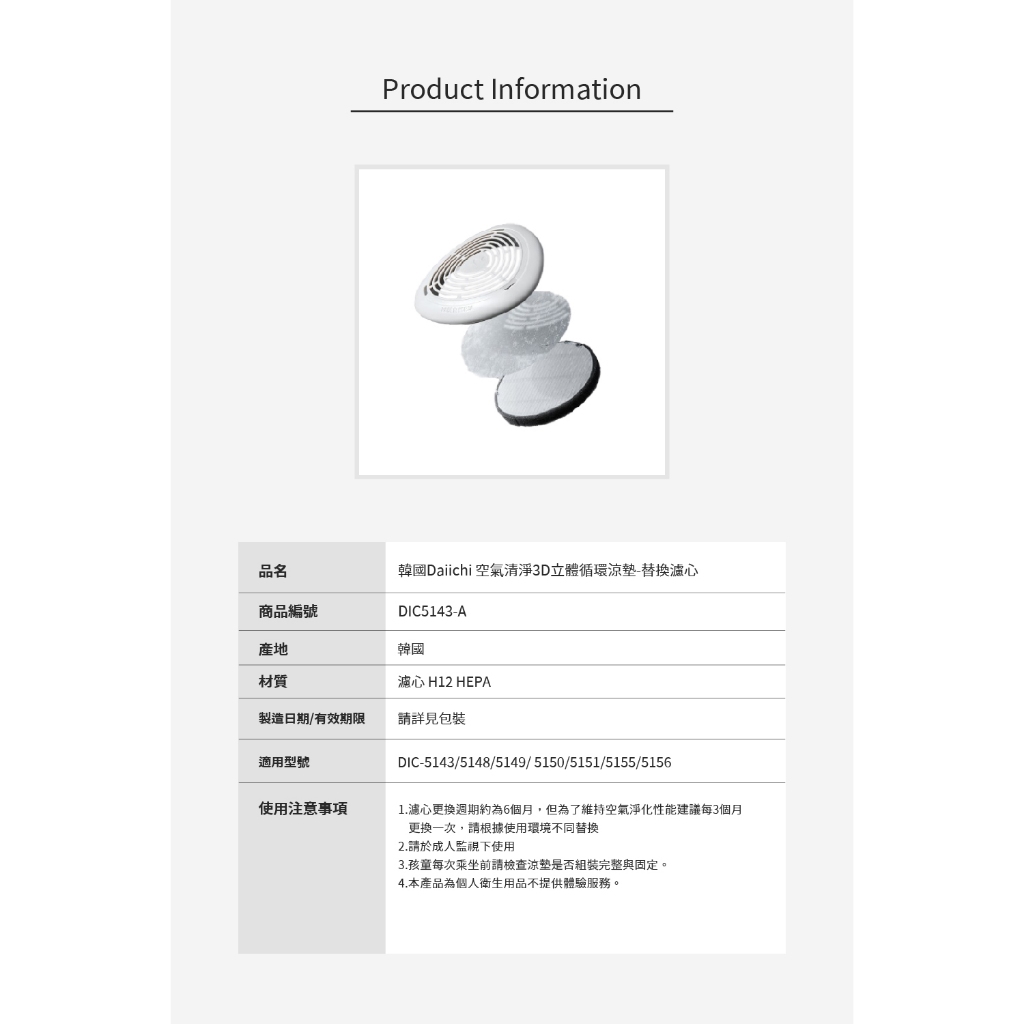 【韓國Daiichi】空氣清淨3D立體循環涼墊-替換濾心 (不通用其他品牌通用 ) 空氣 淨化 抗菌 除臭【韓國Daiichi】空氣清淨3D立體循環涼墊-替換濾心 (不通用其他品牌通用 ) 空氣 淨化 抗菌 除臭Air TreatmentPomier朴蜜兒