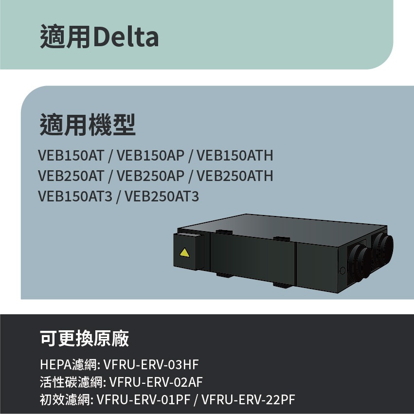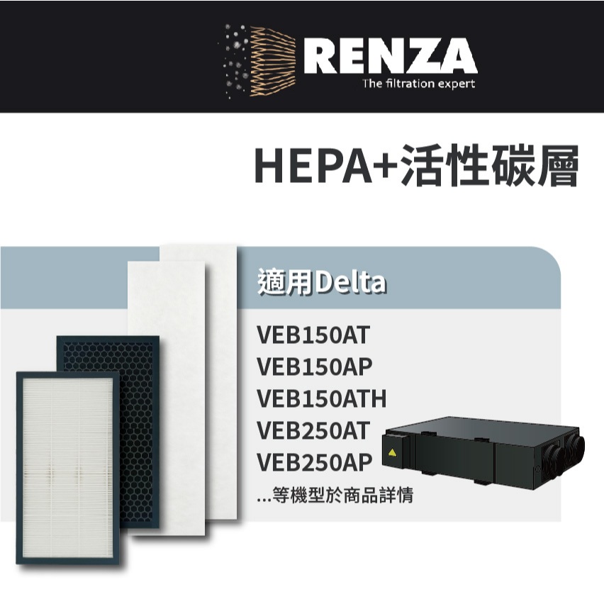 適用 台達電 全熱交換器 VEB150AT 250AT 150AT3 250AT3 活性碳 HEPA 初效濾網 濾芯HEPAx1 活性碳x1 初效濾網x2|初效濾網 x2片Air TreatmentRenza Filtration 濾網專家