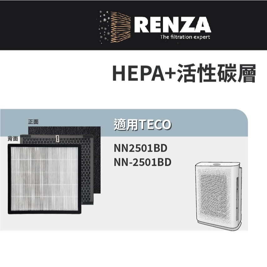 適用TECO東元 NN2501BD NN-2501BD NN2501智慧感應DC節能空氣清淨機 HEPA活性碳濾網 濾芯適用TECO東元 NN2501BD NN-2501BD NN2501智慧感應DC節能空氣清淨機 HEPA活性碳濾網 濾芯Air TreatmentRenza Filtration 濾網專家